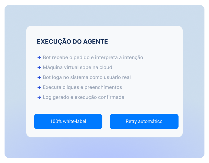 Seu cliente pede, nosso agente executa em tela ou API