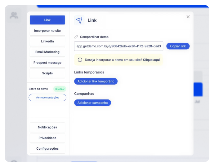 Em poucos minutos, sua demo interativa estará pronta para ser compartilhada.